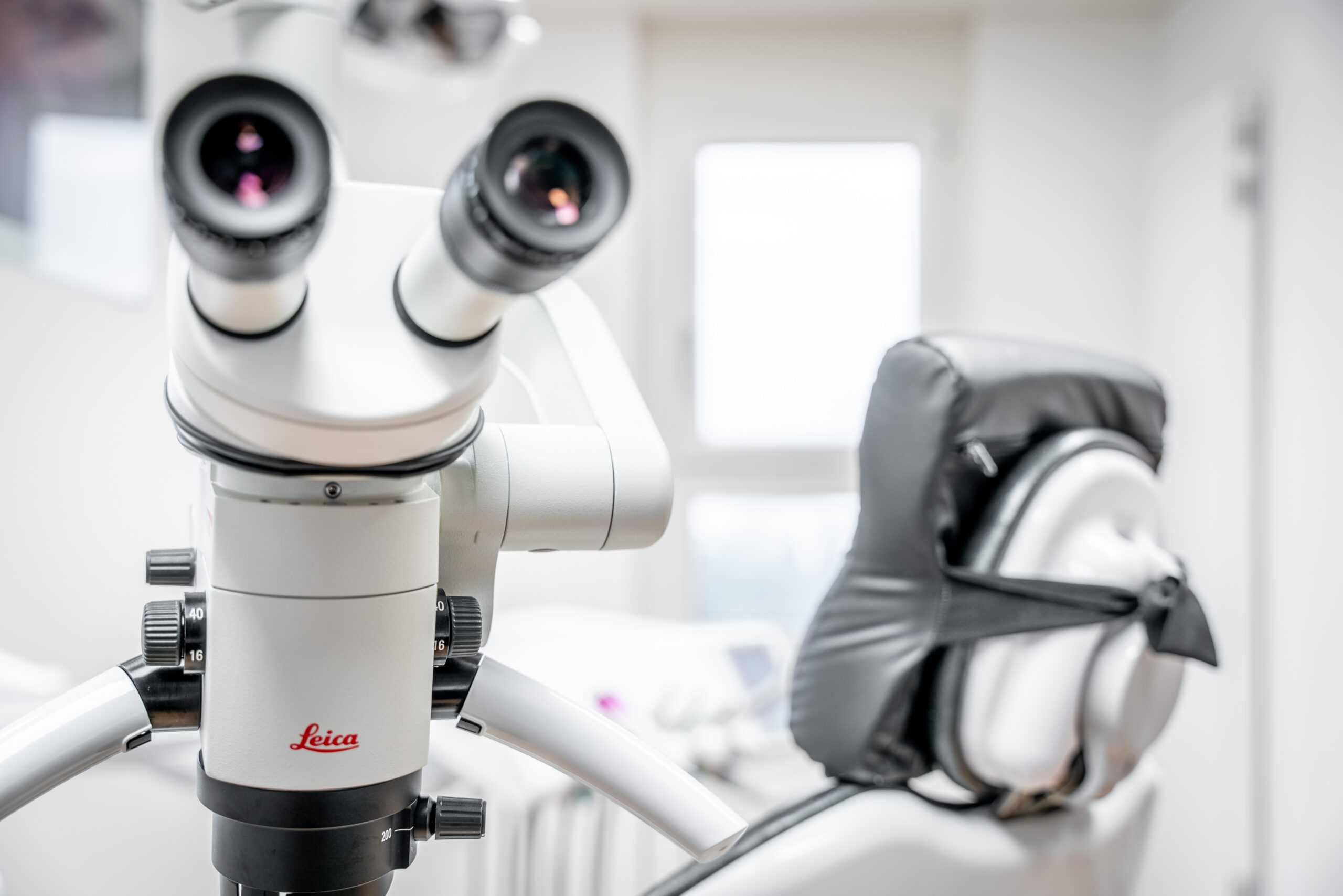Durch den Einsatz des Zahnmedizin-Mikroskops erzielen wir ideale Behandlungsergebnisse. Diese können wir dann durch hochpräzise Mikrozahnheilkunde weiter optimieren. Das Mikroskop wird vor allem bei Wurzelbehandlungen verwendet um zusätzliche Kanäle, Risse, Frakturen zu finden und abgebrochene Instrumente zu entfernen.